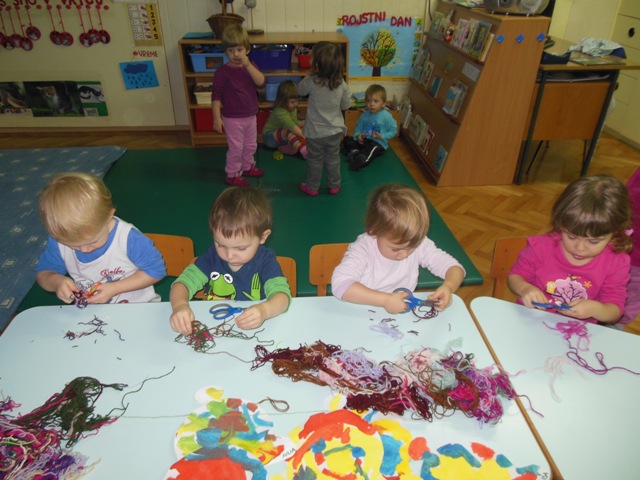 Gibalni razvoj poteka: razvoj gibanja celotnega telesa (groba motorika) in razvoj gibanja rok (fina motorika). Razvoj fine motorike (majhnih mišic in mišičnih skupin) otroka je izjemnega pomena in zahteva usklajeno delovanje živčevja in mišičnega sistema. K temu pripomorejo miselne in telesne aktivnosti ter igre. S primernim učnim okoljem in spodbudami si otrok razvija ročne, prstne spretnosti, ki so uporabne za učenje pisanja v prihodnosti. Zatorej naj otrok v roke vzame barvice, škarje.., skratka to, kar zahteva usklajeno delovanje malih prstkov in veliko natančnosti.