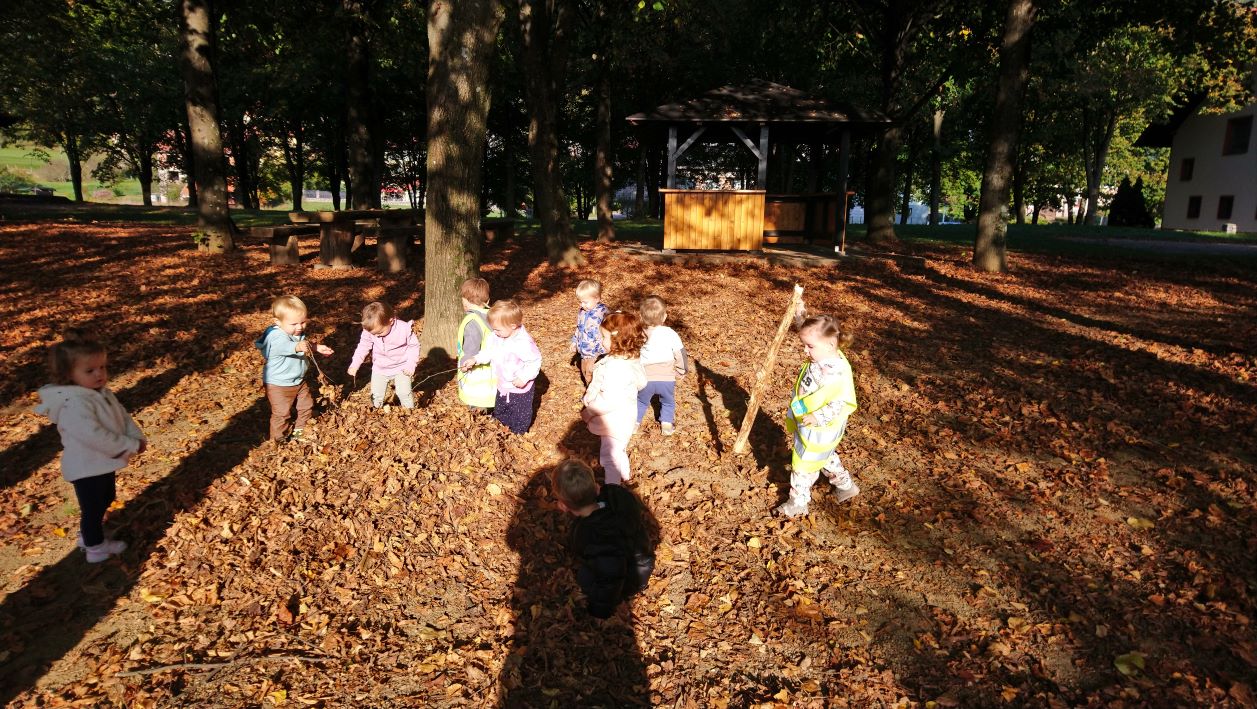 Tam so otroci raziskovali, se lovili, skakali, tekli in spoznavali okolico. Z dejavnostjo želimo otrokom približati naravo in spodbujati pozitiven odnos do nje, da jo bodo cenili in zanjo kasneje v življenju tudi skrbeli in jo ohranjali. Gozd smo uporabili kot učilnico in vir idej za vsa področja kurikuluma, ter s tem otrokom ponudili učno okolje, ki omogoča izzive, spodbuja ustvarjalnost in pozitivno vpliva na njihov razvoj.