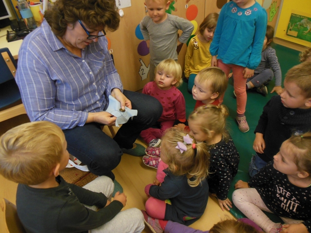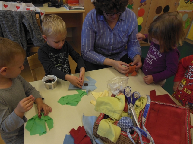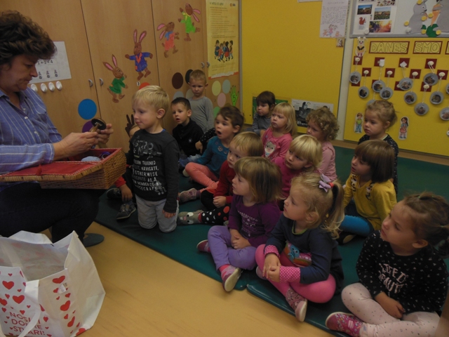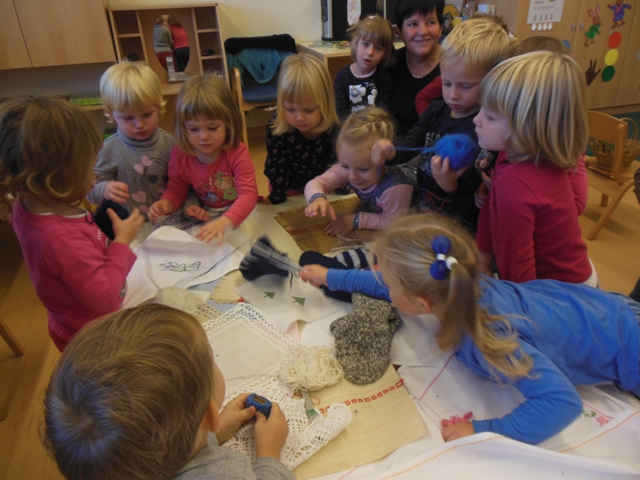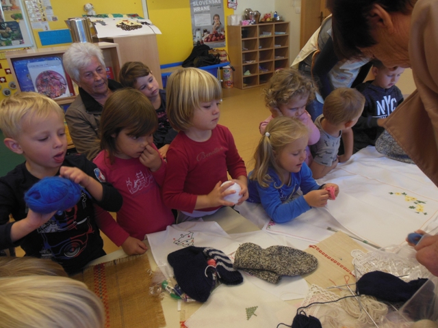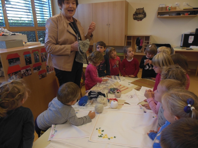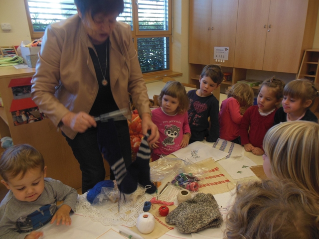 V skupini Zajčki smo s pomočjo staršev povabili k nam v vrtec starejše gospe, da nam predstavijo ročna dela. Otroci so videli kako se plete nogavice, kvačka, veze in prišije gumb. Ogledali smo si veliko narejenih prtičkov z različnimi motivi, pripomočke za ustvarjanje in kaj se skriva v šiviljskem kovčku.