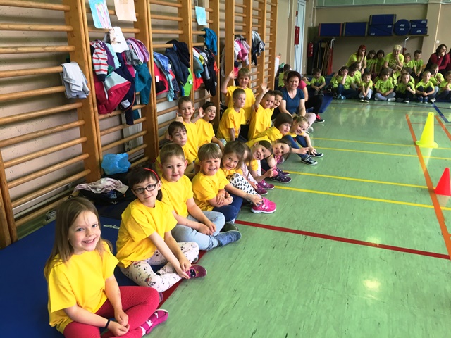 31. maj - Svetovni dan športa. Otroci in vzgojiteljice iz skupin Muce, Zmajčki, Zajčki, Zvezdice, Lisičke, Dežniki in Ribe smo ga preživeli v šolski telovadnici. Skupaj z učenci nižjih razredov, som izvajali različne gibalne naloge in spoznali veliko novih športnih pripomočkov. Učenci višjih razredov, pa so otrokom pri tem pomagali in skrbeli za varnost.