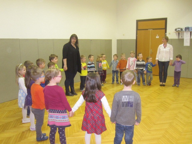 V torek, 31.3. 2015, sva se z otroki folklornega krožka udeležili srečanja kot najmlajša in edina vrtčevska skupina. Otroci so igrali na kamenčke, zapeli pesem Marko skače, uprizorili igro Fuclanje zaplesali Abraham ima sedem sinov in Pika poka pod goro, z izštevanko An ban izbrali igralca in odigrali igro Ura je ena medved še spi. Na harmoniki jih je spremljal Matej Vlahovič.